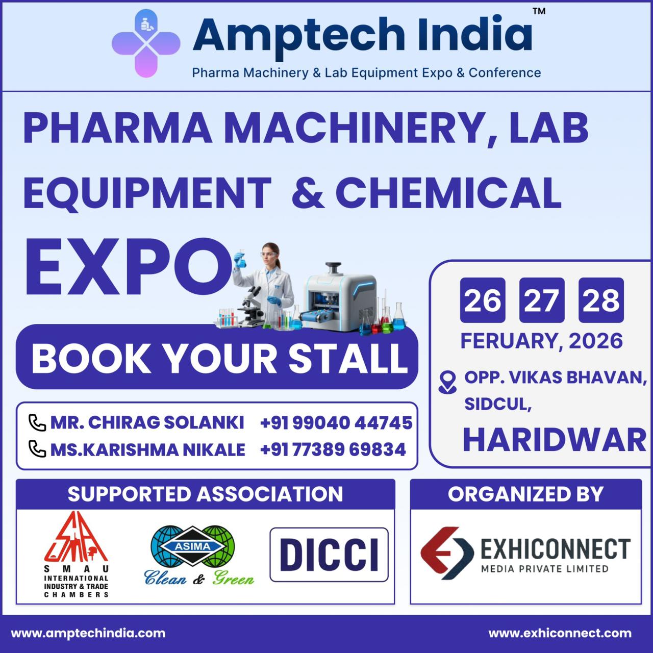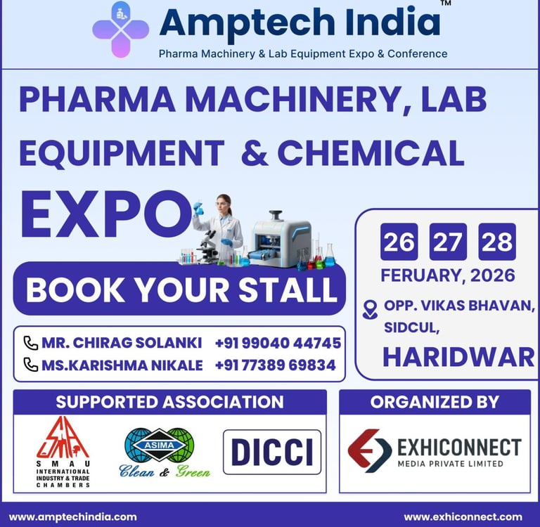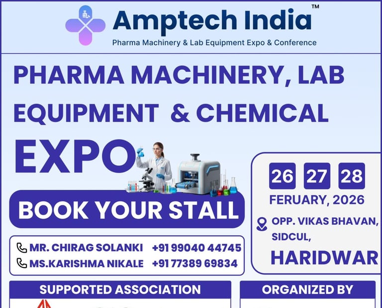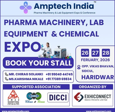 Join us in Haridwar on 26–28 February 2026 for a three-day exhibition showcasing the latest in pharma machinery, lab equipment, packaging solutions, and advanced manufacturing technologies.