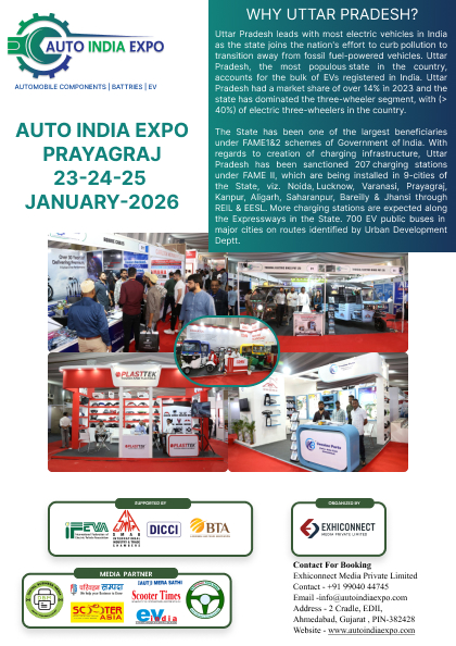 Auto India Expo – Prayagraj, scheduled from 23rd to 25th January 2026, is the region’s biggest showcase of next-gen automotive and electric mobility solutions. Featuring electric vehicles, EV infrastructure, batteries, and smart technologies, the expo brings together leading brands, manufacturers, innovators, and policymakers. Strategically hosted in Prayagraj, Uttar Pradesh, this 3-day event is set to accelerate industry awareness and business growth in North and Central India’s rapidly expanding mobility sector.